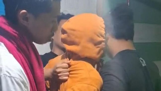 Dalam video yang dilihat detikSulsel, pelaku terlihat diborgol oleh petugas kepolisian. Saat ditangkap, pelaku menggunakan hodie berwarna jingga dengan celana pendek.