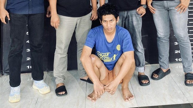 Dari foto yang diterima detikSulsel, JF yang telah ditangkap polisi terlihat sedang duduk jongkok menggunakan baju berwarna biru dan celana pendek coklat. Di belakang pelaku ada 4 polisi dari Tim Resmob Polres Luwu Utara yang menangkapnya.