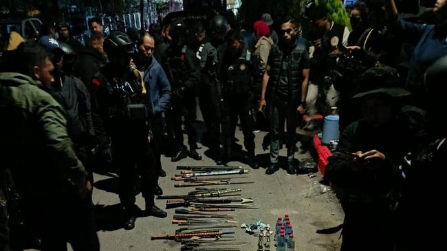 "Kita mengamankan sejumlah barang bukti berupa senjata tajam, 3 botol minum keras jenis CT, dan 3 paket kecil ganja dan 2 paket besar ganja," imbuh Heri.