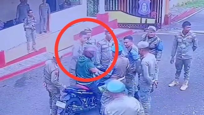 Dalam video yang dilihat detikcom, terlihat seorang pria pengendara motor duduk di atas motornya di depan pos jaga kantor Gubernur Gorontalo. Tampak sejumlah anggota Satpol PP mengerumuni pemotor tersebut.