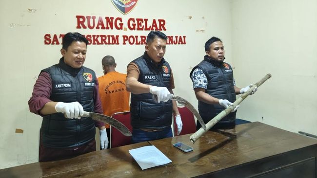 "Barang bukti yang diamankan berupa dua bilah sabit dengan panjang 65 cm yang berbentuk melengkung dan satu potong bambu berwarna hijau kecokelatan dengan panjang sekitar 150 cm," sebut Rahmatullah.