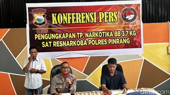 Pria inisial AP (26) ditangkap di Pinrang, Sulawesi Selatan (Sulsel) ditangkap saat hendak menyelundupkan narkoba jenis sabu seberat 3,7 kg. AP mengaku membawa barang haram tersebut untuk seorang pria di Sidrap.