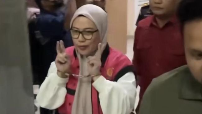 Oknum ASN Pemkot Kendari, Sulawesi Tenggara (Sultra) berinisial ANL (39) tampak memamerkan pose dua jari usai ditetapkan tersangka kasus korupsi dengan kerugian negara Rp 444 juta. Dia juga tersenyum saat digiring ke mobil tahanan.
