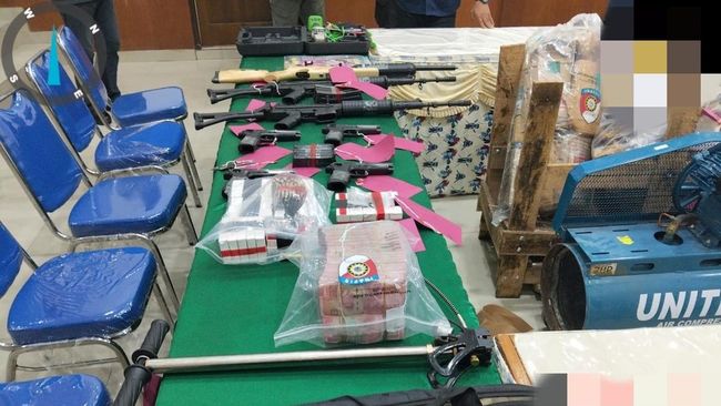 "Sejumlah barang bukti yang diserahkan beberapa di antaranya adalah dua pucuk senpi laras panjang jenis SS1, empat pistol G2 Combat, satu senapan angin PCP, ratusan butir amunisi berbagai kaliber," tutur Faizal.