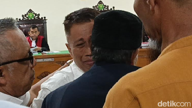 Annar sendiri terlihat menangis dalam waktu yang cukup lama. Hingga dia melepas pelukannya dan berbalik menghapus air matanya lalu meninggalkan ruangan sidang.
