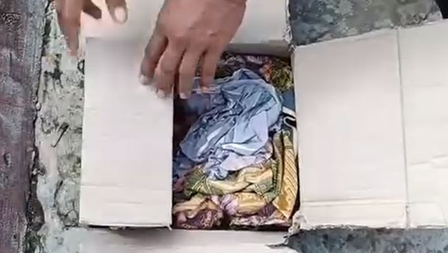 Dari video dilihat detikcom, Jumat (30/5), jasad bayi ditemukan terbungkus sarung di dalam kardus. Sarung itu diikat menggunakan tali. Warga pun mencoba membuka isu kardus karena penasaran. Saat dibuka, ternyata berisi jasad bayi.