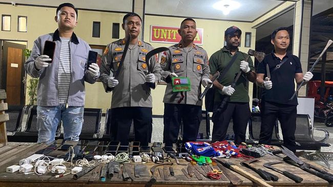 Aparat TNI dan Polri menggelar razia di Lapas Kelas IIB Nabire, Papua Tengah, usai 19 narapidana kabur dari tahanan. Dari hasil penggeledahan, ditemukan 38 handphone dan sejumlah senjata tajam (sajam) yang diselundupkan napi.