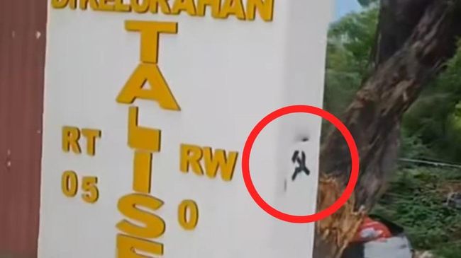 Temuan logo palu arit itu terungkap dari video yang diunggah warga di media sosial pada Selasa (15/7). Logo palu arit itu terpampang di gerbang perbatasan kelurahan dengan cat berwarna hitam.