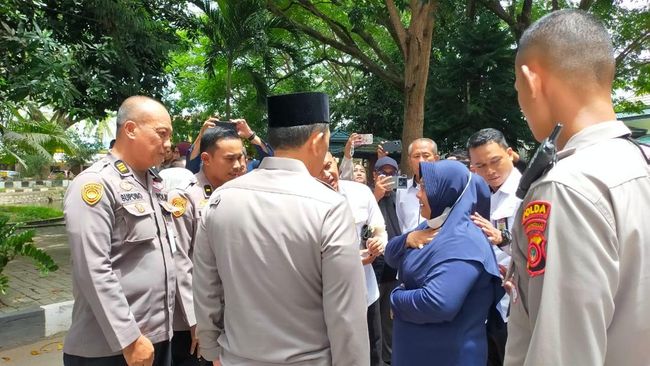Ibu korban mendatangi Mapolda Gorontalo di Jalan Ahmad A. Wahab No.17, Desa Pantungo, Kecamatan Telaga Biru, Kabupaten Gorontalo pada Senin (25/8). Saat bertemu kapolda, ibu korban menangis sambil meminta keadilan terhadap anaknya.