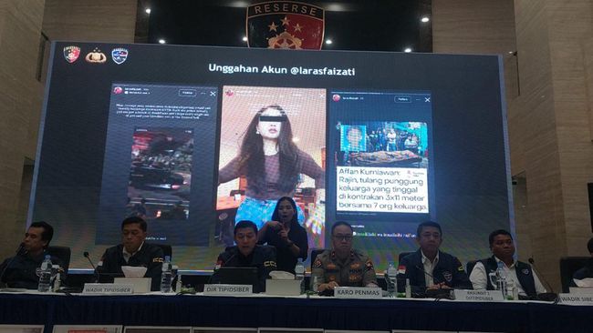 Laras ditangkap di rumahnya di Cipayung, pada Senin (1/9). Penyidik juga menyita sejumlah barang bukti, termasuk akun media sosial Instagram milik Laras.