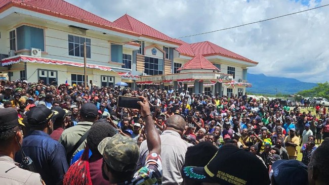 "Saat acara makan siang berlangsung, terlihat asap membumbung dari Kampung Soba. Aparat yang melakukan pengecekan dan menemukan kios milik salah satu warga hangus terbakar," ujar Kabid Humas Polda Papua, Kombes Cahyo Sukarnito dalam keterangannya, Sabtu (4/10/2025).