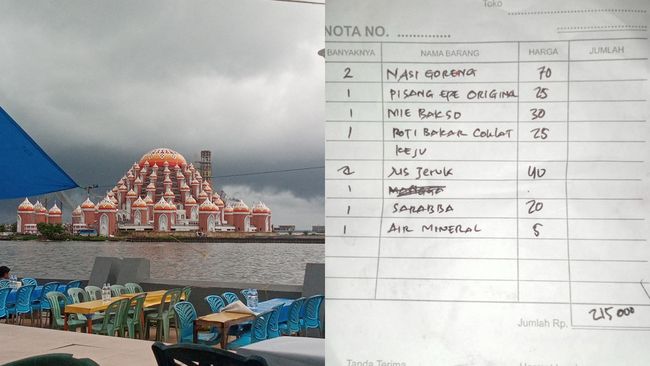 Heboh keluhan warga soal harga makanan di Pantai Losari, Makassar, Sulawesi Selatan, yang kemahalan. Harga tersebut dinilai tidak masuk akal karena nasi goreng (nasgor) dibanderol Rp 70.000 untuk doa porsi dan bakso Rp 30.000 per porsi.