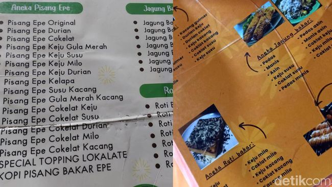 Daftar menu tersebut hanya berisikan varian menu pisang epe, jagung bakar, roti bakar dan minuman tanpa list harga.