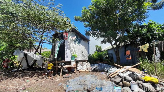 "Awalnya saya tidur di bawah pohon kersen, masih rindang ki belum dipotong. Di bawa di situ duduk, tiga dengan anakku yang kelas 2 SMP sama itu cucuku yang kecil yang perempuan," tuturnya.