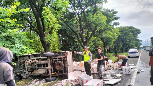 Sebuah pikap bermuatan cumi mengalami kecelakaan tunggal saat melaju di Jalan Tol Reformasi, Makassar, Sulawesi Selatan (Sulsel). Tak ada korban jiwa akibat insiden itu, namun muatan cumi dari mobil pikap tersebut berhamburan di badan jalan.