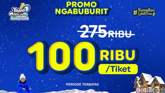 detikers, ngabuburit terkadang bisa terasa membosankan jika tidak diisi dengan kegiatan yang seru. Nah, salah satu pilihan yang menarik untuk mengisi waktu ngabuburitmu adalah dengan bermain salju di Trans Snow World Makassar.