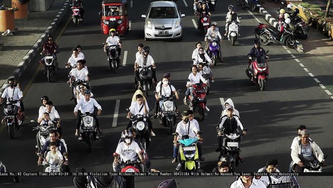 "Dari rekaman pelanggaran itu kemudian kami lihat sebagian besar peserta konvoi berkedok bagi takjil ini berboncengan 3, sepeda motornya tidak dilengkapi spion dan pelat nomor bahkan menggunakan knalpot brong," jelasnya.