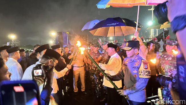 Pantauan detikSulsel, Selasa (9/4/2024), peserta pawai obor mulanya berkumpul di lego-lego Center Point of Indonesia (CPI) sekitar pukul 21.07 Wita. Peserta pawai obor ini dilepas oleh Penjabat (Pj) Gubernur Sulsel Bahtiar Baharuddin, Kapolda Sulsel Irjen Andi Rian Ryacudu Djajadi, dan Wali Kota Makassar Moh Ramdhan 'Danny' Pomanto.