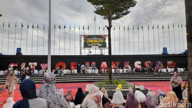 Salat Idul Fitri 1445 H di Pantai Losari Makassar, Sulawesi Selatan (Sulsel), sudah mulai ramai dipadati warga. Jemaah salat Id langsung mengisi saf di dalam areal City of Makassar.