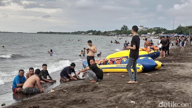Pengusaha banana boat dan rabel di Pantai Tanjung Bayang, Kota Makassar, Sulawesi Selatan (Sulsel) meraup cuan hingga Rp 1 juta dalam sehari pada momen libur Lebaran 2024. Banana boat dan rabel disewakan Rp 25 ribu per orang.