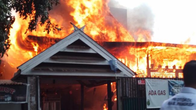 Kebakaran menghanguskan rumah agen gas LPG di Jalan Toddopuli, Makassar, Sulawesi Selatan (Sulsel). Sebanyak 11 unit mobil pemadam kebakaran dikerahkan menuju lokasi.
