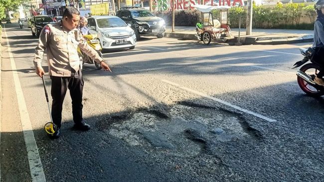 "Ya (banyak laporan lakalantas karena jalan rusak). Coba kita UP dulu Balai Jalan Provinsi atau (Dinas) Pekerjaan Umum," ujar Kompol Mamat, Minggu (12/5).