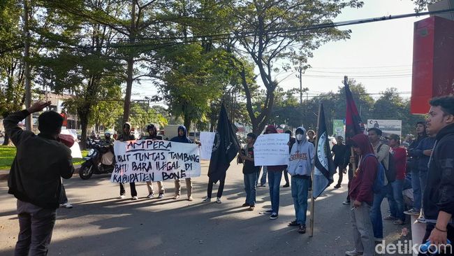 "Adanya pertambangan mineral batu bara ilegal itu merusak ekologi wilayah Bone, mengeruk tanah, berdampak buruk ke masyarakat," tambah mahasiswa lainnya.