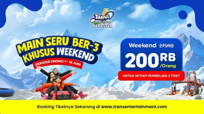 Selain promo di atas, ada promo bundling dengan makanan, hampers, hingga voucher bermain di kids city. Bayangkan keseruan yang bisa kamu dapatkan di Trans Snow World Makassar!