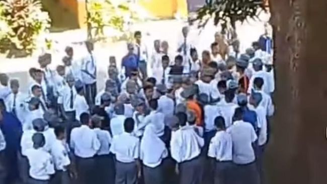 Dalam video beredar, terdengar siswa berteriak histeris melihat sekelompok siswa lainnya berkumpul di halaman sekolah. Sejumlah guru terlihat melerai siswa yang berselisih.