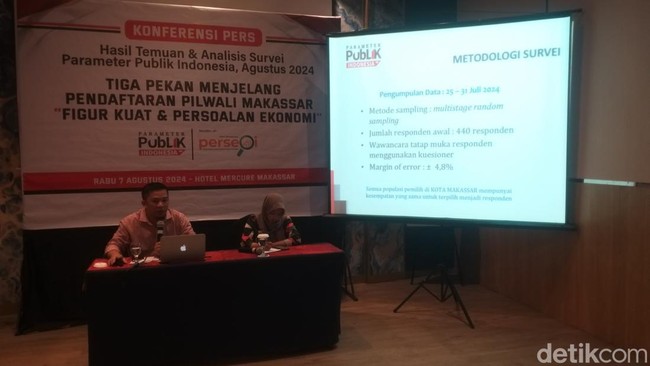 Hasil survei Pilwalkot Makassar ini dirilis PPI di Hotel Mercure Makassae, Rabu (7/8/2024). Survei ini dilakukan pada periode 25-31 Juli 2024 dengan menggunakan metode multistage random sampling.