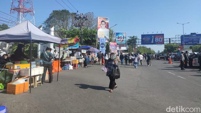 Sementara di sepanjang jalan sekitar lokasi, tampak deretan pedagang berjualan makanan hingga minuman. Sejumlah pedagang juga tampak berjualan atribut atau merchandise Sheila On 7.