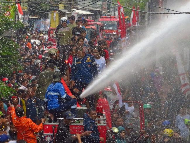 Dalam foto yang diterima detikSulsel, tampak proses pemadaman diwarnai dengan banyaknya warga yang berdesak-desakan di sekitar lokasi kejadian. Selain itu, sejumlah warga juga terlihat naik ke atas mobil pemadam.