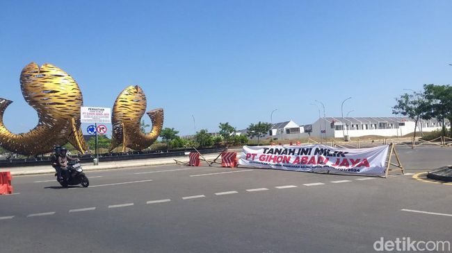 Pemilik lahan menutup akses jalan di kawasan Center Point of Indonesia (CPI), Kota Makassar, Sulawesi Selatan (Sulsel). PT Gihon Abadi Jaya mengklaim kepemilikan lahan setelah memenangkan gugatan perkara sengketa lahan hingga tingkat kasasi di Mahkamah Agung (MA).