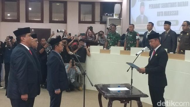 Pantauan detikSulsel, acara pelantikan digelar di Ruang Sipakatau, Kantor Balai Kota Makassar pada pukul 14.40 Wita. Acara diawali dengan pembacaan surat keputusan wali kota Makassar tentang pengangkatan Pj Sekda Kota Makassar.