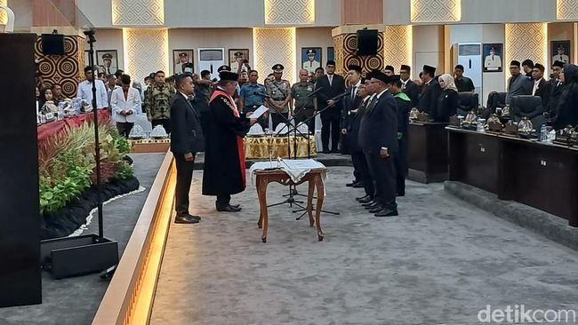 Pimpinan yang akan dilantik selanjutnya maju untuk diambil sumpahnya. Mereka adalah Ketua DPRD Supratman, Wakil Ketua 1 Andi Suharmika dari Golkar, Wakil Ketua 2 Anwar Faruq dari PKS, dan Wakil Ketua 3 Eric Horas dari Gerindra.