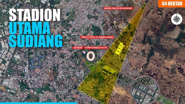Zudan menjelaskan Kementerian PUPR (sebelum menjadi Kemenpu) sudah menentukan titik koordinat pembangunan stadion di kawasan GOR Sudiang. Kantor Otoritas Bandar Udara (Otban) Wilayah V Makassar pun memberikan rekomendasi terkait ketinggian struktur bangunan stadion.