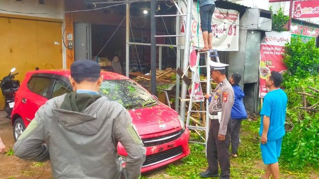 Polisi tidak merincikan kerusakan pada mobil yang tertimpa pohon itu. Pohon yang tumbang di lokasi diduga dipicu karena hujan deras yang disertai dengan angin kencang.