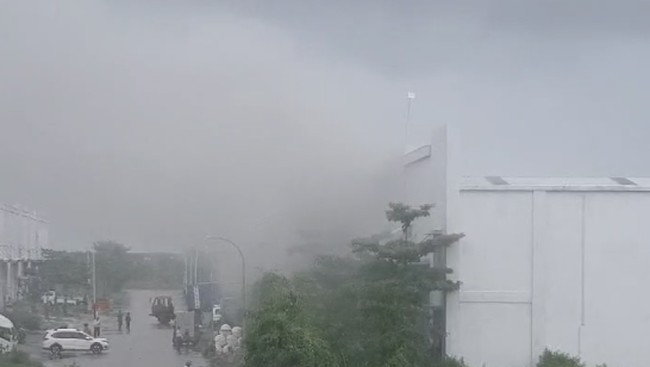 Sementara itu, dalam video beredar tampak asap kebakaran membumbung tinggi dari dalam gudang. Tampak sejumlah pria melakukan penanganan awal.