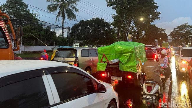 Pantauan detikSulsel di lokasi, Rabu (18/12/2024) pukul 18.25 Wita, kemacetan mulai terjadi di Simpang Lima Mandai. Pengendara mobil kesulitan bergerak di ruas jalan tersebut.