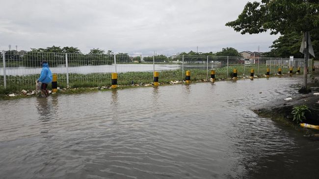Waduk Tunggu Pampang, Kota Makassar, Sulawesi Selatan (Sulsel) meluap hingga membuat sejumlah ruas jalan tergenang usai hujan yang mengguyur semalaman. Ketinggian air mencapai mata kaki orang dewasa.