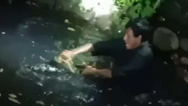 Dilihat dari video beredar, tampak Wandi berjibaku dengan ular di kanal yang dipenuhi air. Sementara warga yang berkerumun terdengar berteriak histeris melihat aksinya.