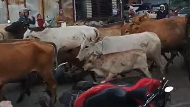 "Para pengembalanya sudah tidak dapat mengendalikannya karena sapi-sapi tersebut lari semua," ucap Syamsu Rijal.