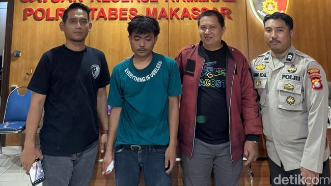 Berdasarkan foto yang diterima detikSulsel, Senin (13/1/2025), tampak pelaku sudah diamankan ke Polsek Manggala. Dia terlihat mengenakan kaos oblong berwarna biru tosca dan celana jeans.