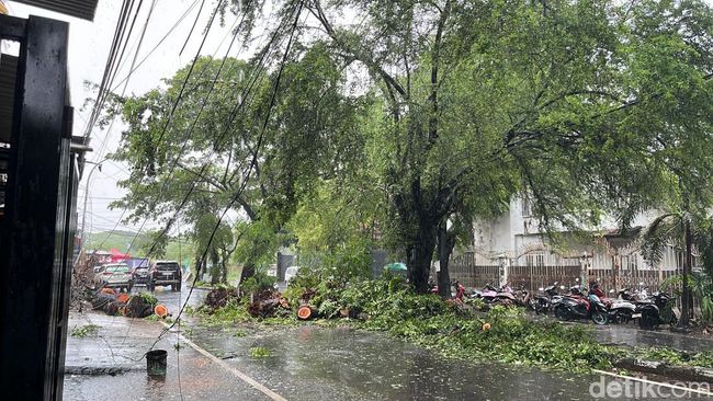 Pantauan detikSulsel di lokasi, pukul 12.00 Wita, sisa pohon yang telah dipotong masih berserakan di jalan. Sementara mobil dan motor yang tertimpa pohon sudah dievakuasi.