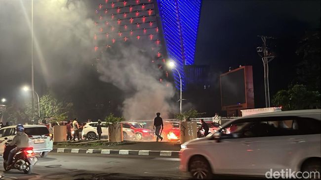 Pantauan detikSulsel, Kamis (20/2/2025) pukul 20.00 Wita, tampak sejumlah massa berkumpul di samping kampus UNM, Jalan Pendidikan. Mereka terlihat mengumpulkan sejumlah batu, bambu hingga balok kayu.
