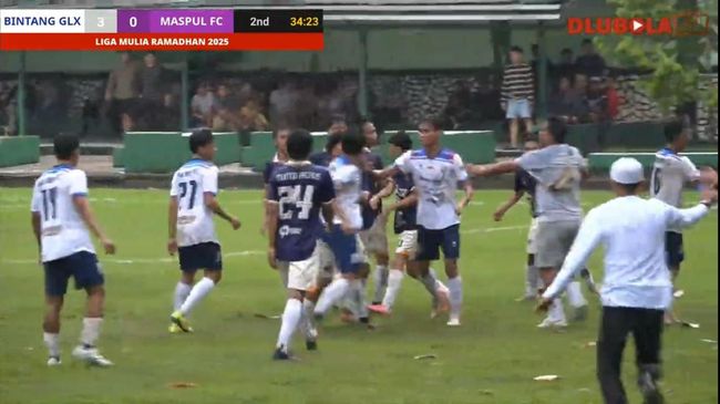 Laga antara Bintang Galaxy melawan Maspul Enrekang dalam babak kualifikasi Liga MULIA Ramadhan 2025 di Makassar, Sulawesi Selatan (Sulsel), berakhir ricuh. Pemain dari kedua tim baku hantam setelah pertandingan.