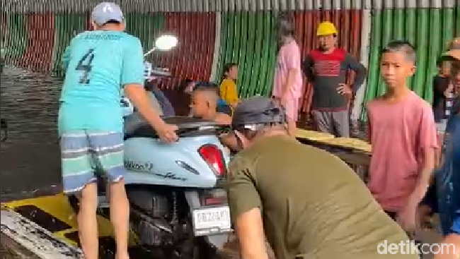 Tampak sejumlah pengendara mendorong motornya. Beberapa pengendara lainnya memilih memutar balik kendaraannya. Sementara pengendara yang nekat menerobos banjir harus berhati-hati. Jalan di bawah terowongan tidak rata sehingga bisa menyebabkan motor terjerembab di kedalaman.