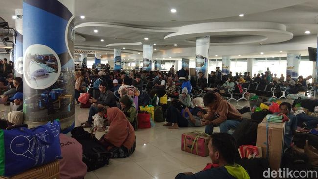 Pantauan detikSulsel di lokasi, Jumat (21/3), terlihat penumpang memenuhi ruang tunggu. Bahkan banyak di antaranya yang duduk melantai lantaran tidak mendapatkan kursi.