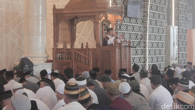 "Pada hari ini, semua umat muslim yang bertakbir kepada Allah SWT merupakan salah satu bukti bahwa tidak ada yang terjadi tanpa kehendak Allah SWT. Semua yang hadir pada hari ini di masjid ini adalah bukti dari kebesaran Allah SWT, sehingga patut bagi kita untuk selalu bersyukur," ujarnya.