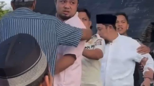 Dalam video beredar, terlihat seorang panitia berbaju putih dan songkok hitam bersitegang dengan jemaah yang mengenakan baju merah muda. Keduanya nyaris adu jotos hingga akhirnya dipisahkan oleh sejumlah orang yang berada di lokasi.